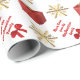 La conception personnalisée de fête de papier d'emballage de vacances de Noël avec de l'or et l'arc de flocon de neige d'hiver et rouge blanc de parties scintillantes de Noël actuel et rouge de ruban sur un arrière - plan personnalisable blanc simple, personnalisent cette conception en ajoutant votre nom de famille ou texte de Noël saluant et ajoutant votre photo de famille préférée.