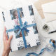 Joyeux Noël Photo Famille Moderne Blanc Vacances Papier Enveloppant. Design magnifique avec votre photo, texte de Noël joyeux et simple nom de famille et année dans un bleu hivernal moderne sur blanc. Personnalisez avec votre photo, nom, année. Tous les textes, polices et couleurs sont personnalisables. Nous vous invitations à visiter notre magasin Zazzle, Life on Memory Lane, pour des produits correspondants et plus encore. Veuillez nous contacter si vous avez besoin d'aide.