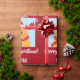 Un joli emballage cadeau de Noël moderne pour les enfants, avec Rudolph the Reindeer, l'accueil "Joyeux Noël" dans la typographie stylisée, et un nom personnalisé. Sur un arrière - plan rouge de Noël avec des flocons de neige.