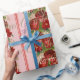 Papier Cadeau Joyeux Noël Script Rose Rouge or marbre rose