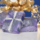 Joyeux ornements d'arbre de Noël enveloppant du papier. Élégant, élégant, beau, festif. Lavande mauve mauve et tendance, couleurs pastel argent blanc pour elle. Vacances vintage style ancien emballage cadeau design. Copyright photo Marg Seregelyi Photography.