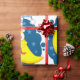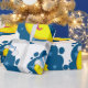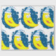 Un joyeux visage de lune jaune portant un casquette bleu et blanc. Cette conception semble vraiment efficace sur ces papiers d'enveloppement