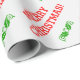 Ce papier d'emballage traditionnel de Noël comporte le message "MERRY CHRISTMAS!". Le papier enveloppant comme celui-ci pourrait être utilisé pour envelopper des cadeaux de Noël ou des cadeaux.