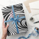 Des lignes noires et blanches tourbillonnent et se tortillent dans un motif hypnotique créant un sentiment de mouvement