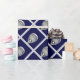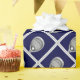 Emballage cadeau de gardien de crosse avec illustration de bâton de gardien de but lax sur un arrière - plan bleu.