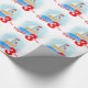 Papier d'emballage d'anniversaire comportant peu de bateau en bois avec la voile et drapeau un jour venteux en mer en bleu et rouge. Personnalisez ce document lunatique d'anniversaire de garçons avec votre nom et âge. Lit actuellement Taylor 3 aujourd'hui. Uniquement peint dans l'aquarelle et conçu par Sarah Trett.