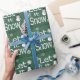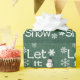 Le papier d'emballage super mignon a une conception de faux lin vert avec des flocons de neige blancs et les mots "Let it Snow" dessus. Il y a aussi un mignon bonhomme de neige dans la conception.