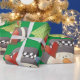 Un bonhomme de neige tenant un signe de laisser neiger. Cette conception semble vraiment efficace sur ces papiers d'enveloppement