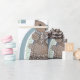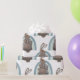 Un joli joli lapin illustré géant avec papier d'emballage cadeau de théière, avec un arc-en-ciel boho. Joli bleu pastel et brun. Parfait pour l'emballage cadeau d'anniversaire de baby shower ou de bébé.
