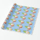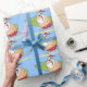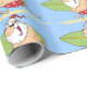 Le dessin sur ce papier d'emballage de Noël est une image répétée d'un joyeux dessin animé du Père Noël portant une planche de surf.