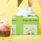 Un papier d'emballage d'anniversaire vert enfant avec l'illustration en carreaux d'une coccinelle lisant un livre sous deux fleurs jaunes et les mots "Joyeux anniversaire" écrits en dessous. Parfait pour un anniversaire de printemps :) © ArianeC Illustrations
