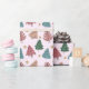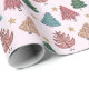 Illustration ludique de cinq arbres de Noël stylisés dans les tons pastel rose, vert et bleu, encadrés d'élégants traits de griffes. Accompagné d'étoiles dorées vives, cette oeuvre d'art exhale une esthétique de vacances charmant et moderne. Contre un arrière - plan à texture rose douce, il saisit une ambiance festive mais minimaliste, parfaite pour un décor de saison ou pour des motifs.