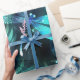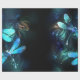 Deux libellules transparentes, lumineuses, turquoise, artistiquement dessinées sur l'arrière - plan de nuit avec des algues luminescentes et des lucioles. libellule éclatante.