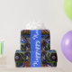 L'emballage cadeau de l'étoile de David vitrage vitrail pour Hanoukka. "Happy Hanoukka" écrit en caractères blancs sur arrière - plan bleu. Simple mais élégant.