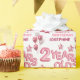 Papier d'emballage anniversaire de enfant adorable avec ballon rose numéro 2, ballon alphabet lettre, ballon étoile et ballon de fête. Avec un message de bienvenue "Joyeux anniversaire" et le nom de l'enfant. Les deux peuvent être customisés.