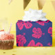 J'ai créé ce motif à partir d'une impression de lino faite à la main. J'espère que les fleurs d'hibiscus roses sur l'arrière - plan bleu foncé vous apportent ce sentiment de vacances tropicale dans votre maison. Bon appétit !
