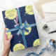 Un dessin de l'Homme dans la Lune entouré d'étoiles orne ce papier d'emballage cool avec un look vintage! Customisez en changeant la couleur arrière - plan, si vous le souhaitez !