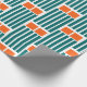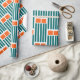 Ce papier d'emballage a un design moderne du milieu du siècle fait de cinq lignes turquoises et rectangles orange répété à travers le design.