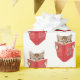 Tabby chat avec lunettes lecture souris rouge livre de recettes sur arrière - plan blanc