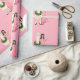 Lamama beige clair portant un papier d'emballage de couronne de coeur. Une femme branchée en robe rose est à côté du mignon lama. Un lama unique dessiné à la main dans un papier d'emballage motif à thème de la Saint-Valentin. Cute alpaga avec illustration de mode féminine. Papier d'emballage rose parfait pour amis, soeurs ou filles qui aiment les alpacas.