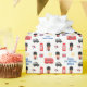 Papier enveloppant avec de mignons gardes londoniens, couronne royale, bus, drapeau Union Jack et autres symboles londoniens pour l'anniversaire des garçons. Personnalisez facilement le texte. - Kate Eden Art.