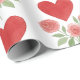 This wrapping paper features a delightful design of red hearts and pink roses set against a crisp white background. It's perfect for adding a touch of romance to your Valentine's Day gifts.