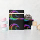 Lueur dans le motif au néon foncé de cercles sur le papier d'emballage d'arrière - plan noir
