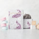 Envelopper les cadeaux pour la mariée et le marié avec un rouleau de Magenta Peacock Leaf Vine papier Mariage enveloppant. Le papier à écouvillonner présente un gris clair et un arrière - plan de vigne à feuilles blanches avec un carrelage dynamique magenta paon. Papeterie mariage supplémentaire et cadeaux disponibles avec ce design aussi.