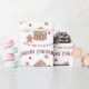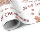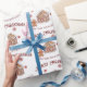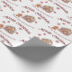 Ce papier d'emballage festif de Noël ou de vacances présente un thème de pain d'épices sain. Une image d'une maison en pain d'épices est photographiée au centre, avec un mignon petit homme en pain d'épices à gauche. Les petits biscuits rouges de flocon de neige neigent du ciel. Un exemple de voeux de Noël de Joyeux est imprimé au-dessus de l'arbre et un exemple de nom de famille est imprimé ci-dessous. Vous pouvez personnaliser l'emballage cadeau pour inclure votre propre nom ou texte personnalisé.