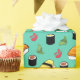 Papier d'emballage cadeau savoureux qui vous donnera faim en le regardant ! Il propose différentes sortes de sushis, comme le tamago nigiri et le maki de concombre (yum !). Autour des sushis, on trouve du wasabi stylisé et du gingembre, car aucun sushi n'est complet sans lui.