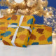 Papier Cadeau Mammoths laineux orange, bleu, or, motifs