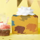 Offrez à vos cadeaux un air préhistorique avec cette enveloppe cadeau à motifs. Ce papier d'emballage présente un motif de dessins animés illustrant des mammouths laineux en orange, bronze, marron, bleu et orange contre un arrière - plan de couleur or.