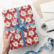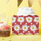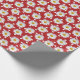 Pois blancs sur couture rouge coudée arrière - plan avec fleurs marguerites blanches.