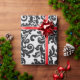 Papier Cadeau Mariage damassé florale moderne noir & blanc éléga