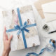 Beau papier pour donner des cadeaux de mariage. Un motif de bride blanc et or avec des accents en or