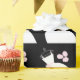 Joli papier d'emballage sur le thème de la mariée dans les tons roses avec une robe mariage stylisée et des fleurs sur un arrière - plan noir. Un design personnalisable pour personnaliser avec votre propre texte, photos et idées.