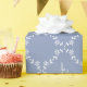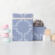 Chic et moderne. Ce papier d'emballage à la française mémorable présente un motif répétitif qui comprend un joli ensemble de polices contemporaines dans un cadre floral blanc, contre un arrière - plan bleu poussiéreux.