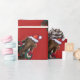Animal Parade Mastodon appelé Thelma est tout décoré pour Noël avec un chapeau de Père Noël et des couronnes saintes contre un arrière - plan rouge de Noël texturé. Elle est sûre d'apporter des sourires cette saison des fêtes ! Découvrir vos couloirs avec des animaux de la Parade Animale colorée et festive qui vont et viennent. Ho, ho, ho !