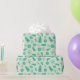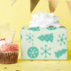 "Menthol Green Christmas Tree and Ornaments Festive Wrapping Paper" présente des arbres de Noël turquoise et lumineux avec des ornements et des flocons de neige, idéal pour un enveloppement de vacances unique et joyeuse.