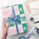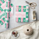 Papier Cadeau Mi-Siècle Rétro Joyeux Noël Rose Vert