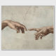 La Création d'Adam par Michelangelo Peinture chef-d'oeuvre - La Création d'Adam est l'un des tableaux les plus célèbres au monde, créé par le maître-artiste Michelangelo à Rome. La Création d'Adam est une fresque classique que Michel-Ange a peinte dans le Vatican de Rome, sur la Chapelle Sixtine, en 1511-1512. La Création d'Adam imprimée sur notre don est une partie de la fresque, montrant toute la création de l'Homme dans le Livre biblique de la Genèse, où Dieu (à droite) donne vie au premier homme, Adam (à gauche). Le tableau montre la presque touche des mains, entre Dieu et Adam. L'image est un tableau emblématique de la Renaissance. Michel-Ange montre Dieu comme un vieil homme aux cheveux blancs et barbus blancs, portant un long vêtement blanc. Dieu et Adam ont tous deux leurs bras tendus l'un à l'autre, comme si Dieu générait une étincelle de vie dans le nouvel homme Adam. La peinture de Michel-Ange montre la ressemblance de l'homme à Dieu, montrant Dieu créé des humains à son image.