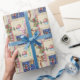 Papier Cadeau mignon chiot brun regardant père Noël traîner dans