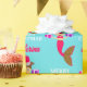 Une belle illustration d'une fille de sirène de Noël portant un chapeau de Père Noël, parties scintillant rose et faux or nageant dans la mer bleue. L'adorable sirène tient des cadeaux de Noël. Un design de Noël idéal pour les enfants qui aiment les sirènes. Customisez le nom et faites-le vous-même. Un cadeau de Noël parfait pour les enfants et un décor de vacances.