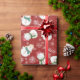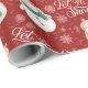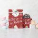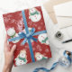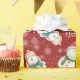 Deux mignons bonhomme de neige sont présentés sur ce papier d'emballage de Noël fantaisiste. Un adorable bonhomme de neige a sur son chapeau de Père Noël tandis que l'autre est doué dans son casquette de bois. Des flocons blancs et de la neige complètent le motif de vacances.