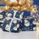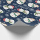 Deux mignons bonhomme de neige sont présentés sur ce papier d'emballage de Noël fantaisiste. Un adorable bonhomme de neige a sur son chapeau de Père Noël tandis que l'autre est doué dans son casquette de bois. Des flocons blancs et de la neige complètent le motif de vacances.