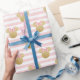 Papier Cadeau Minnie Mouse | Or et rose rayé Anniversaire