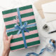 Papier Cadeau Moderne Noël rayé Vert Rose Foncé