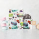 macarons bleu-vert cool et vert menthe avec baies rouges sans couture motif sur arrière - plan blanc.