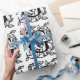 Monogramme G Le papier d'emballage initial à motif floral noir et blanc peut être customisé avec une image, un nom, un texte, un logo ou une photo. Changez l'arrière - plan blanc à n'importe quelle nuance de bleu, vert, jaune, orange, rose, rouge, marron et violet. Idéal pour envelopper Noël, anniversaire, baby shower ou cadeaux de mariage.