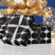 Un joli design composé d'un motif géométrique noir et blanc ou argent. Avec ce papier d'emballage monogrammé, vous pouvez personnaliser vos cadeaux pour leur donner une touche moderne unique.